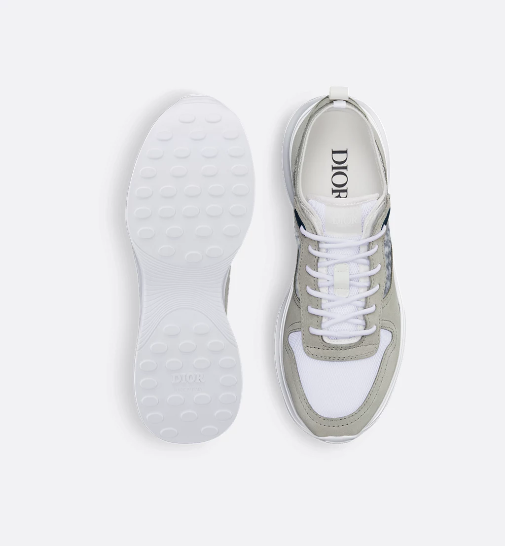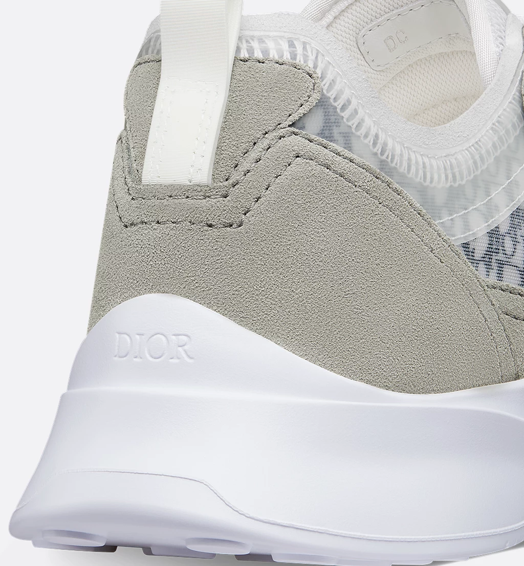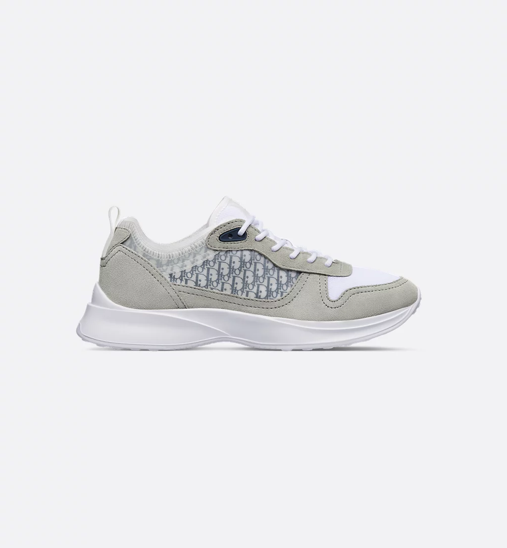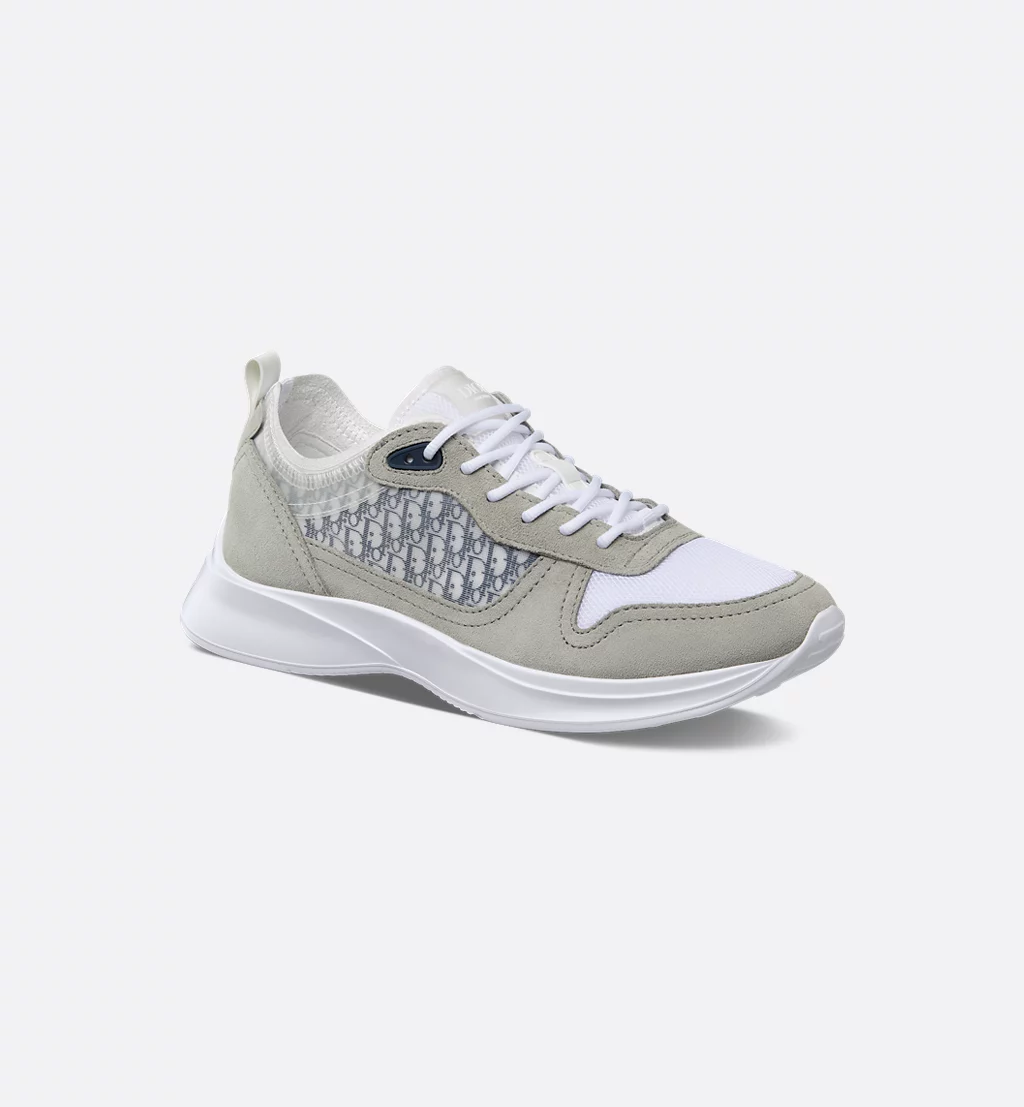 Deze B25 Runner-sneaker combineert een sportief silhouet met de elegante stijl van het modehuis. Dit ontwerp is vervaardigd van grijze suède en witte technische mesh en versierd met het kenmerkende blauw met wit Dior Oblique-motief en transparante rubberen inzetstukken. Een gemodelleerde witte rubberen zool rondt de B25 Runner-sneaker helemaal af. Geef casual outfits een tijdloze allure met dit paar.